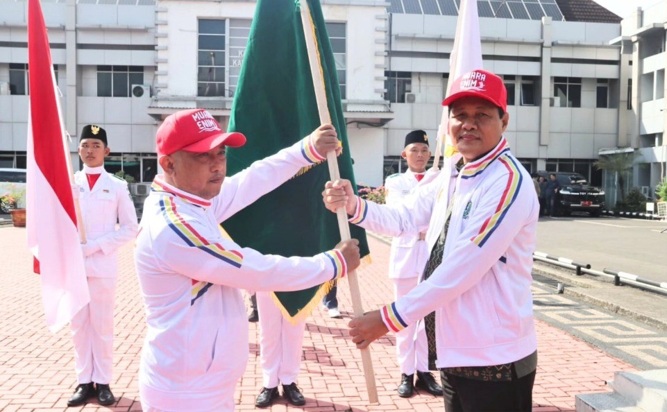 Bupati Muara Enim, H. Edison, S.H., M.Hum bertempat di Halaman Kantor Bupati Muara Enim, pada hari Kamis tanggal 16 Oktober 2025 melepas kontingen Kabupaten Muara Enim yang turut dihadiri Wakil Bupati Muara Enim, Ir. Hj. Sumarni, M.Si. ini ditandai dengan pengibaran bendera start oleh Bupati didampingi Ketua TP. PKK Kabupaten Muara Enim, Hj. Heni Pertiwi Edison, S.Pd., beserta Forkopimda lingkup Kabupaten Muara Enim.